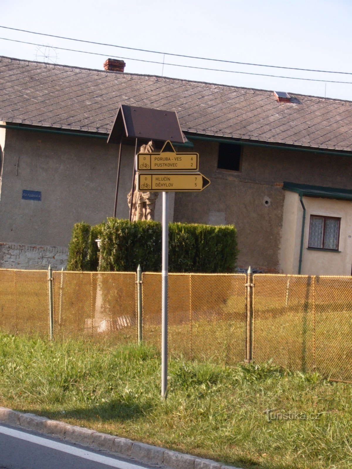 Rozcestí značených cest a kousek níže i cyklotras v centru Martinova.Modrá značka odtud vede přes Děhylov, Hlučín až do Chuchelná, na druhou stranu přes Pustkovec, do Poruby ke Slovanu, kde je dalši turistický uzel.Směrem na Děhylov je odbočka za chvíli do ulice Na Pastvisku (u sochy sv. Floriána), zde se také kříží cyklotrasy D a T ostravské cykloturistické sítě. Trasa T směřuje na okraj Poruby…