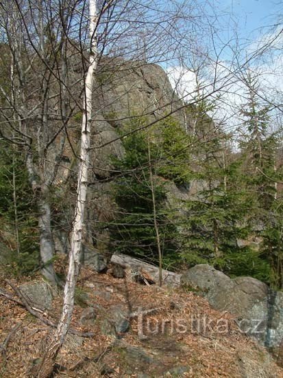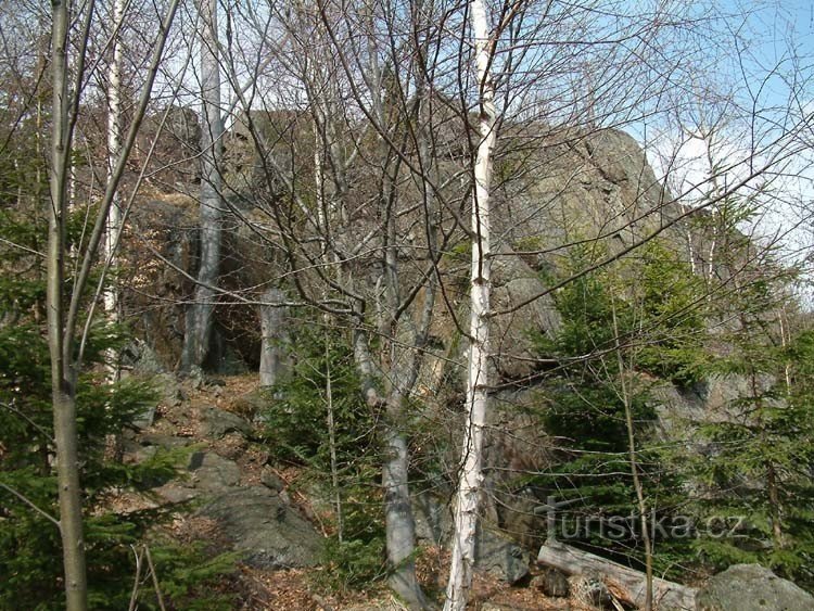 Soustava malých skal. Nabízí se zde krásný výhled do údolí. Prochází zde zelená turistická značka vedoucí z Lipové Lázně.