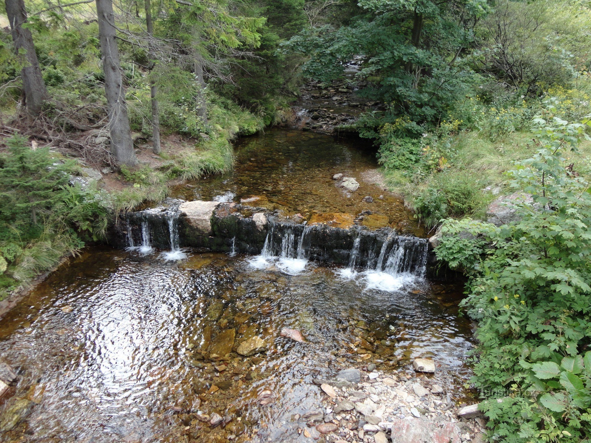 Modrý potok je třetím oficiálním přítokem řeky Úpy, prvním přítokem je Rudný potok pramenící na svazích Sněžky, druhým je Studniční potok stékající od Studniční hory. Modrý potok pramení na úpatí Luční hory ve výšce cca 1500 metrů a stéká do Modrého dolu, od kterého má i své označení. Od mostu přes Modrý potok se nabízí pěkné výhledy do Modrého dolu a ke Studniční hoře. V závěrečné fázi toku je…