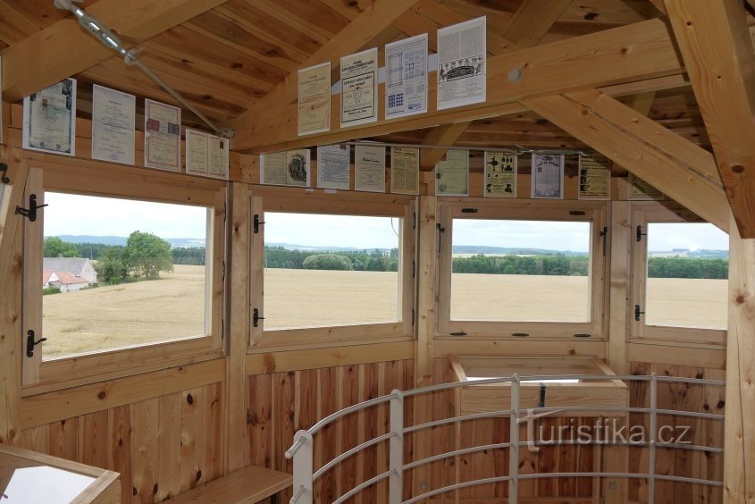 Kamenná rozhledna kruhového půdorysu se zastřešeným dřevěným ochozem vznikla z iniciativy místního kováře pana Dobeše. Jejím základem je ocelové spirálové schodiště, kolem kterého je postavena obvodová zeď.