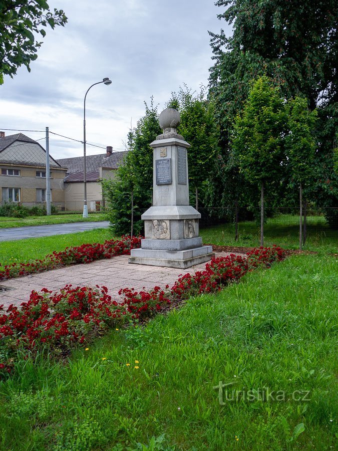 V centru, které tvoří typická hanácká náves najdeme jak výše jmenované pamětihodnosti, tak i jeden pomník. Jde o válečný pomník, který připomíná oběti a ztracené z Velké války, tak i z té…