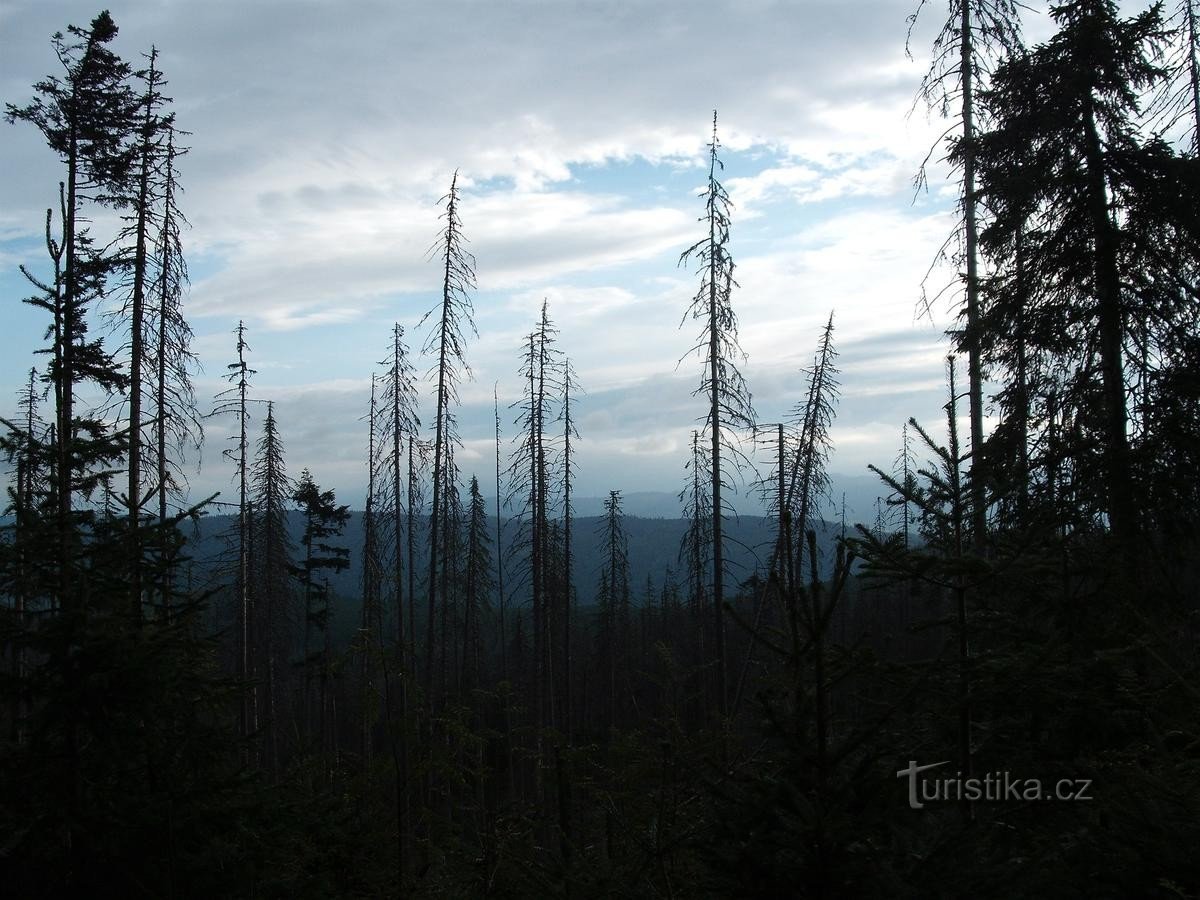 Jedeme z Nového Údolí na Plešné jezero Jedu na kole z Nového Údolí po cyklostezce na Plešné jezero, potom sjíždím kolem Černého Kříže směrem na Stožec a zpět do Nového Údolí Jídlo jsem měl s sebou, bydlel jsem v Novém Údolí, Ve Strožci je obchod, reataurace i několik penzionů Výšlap to byl hezký, převýšení asi 400 m. Plešné jezero je moc krásné, ale po cestě jsem viděl následky kůrovcové…