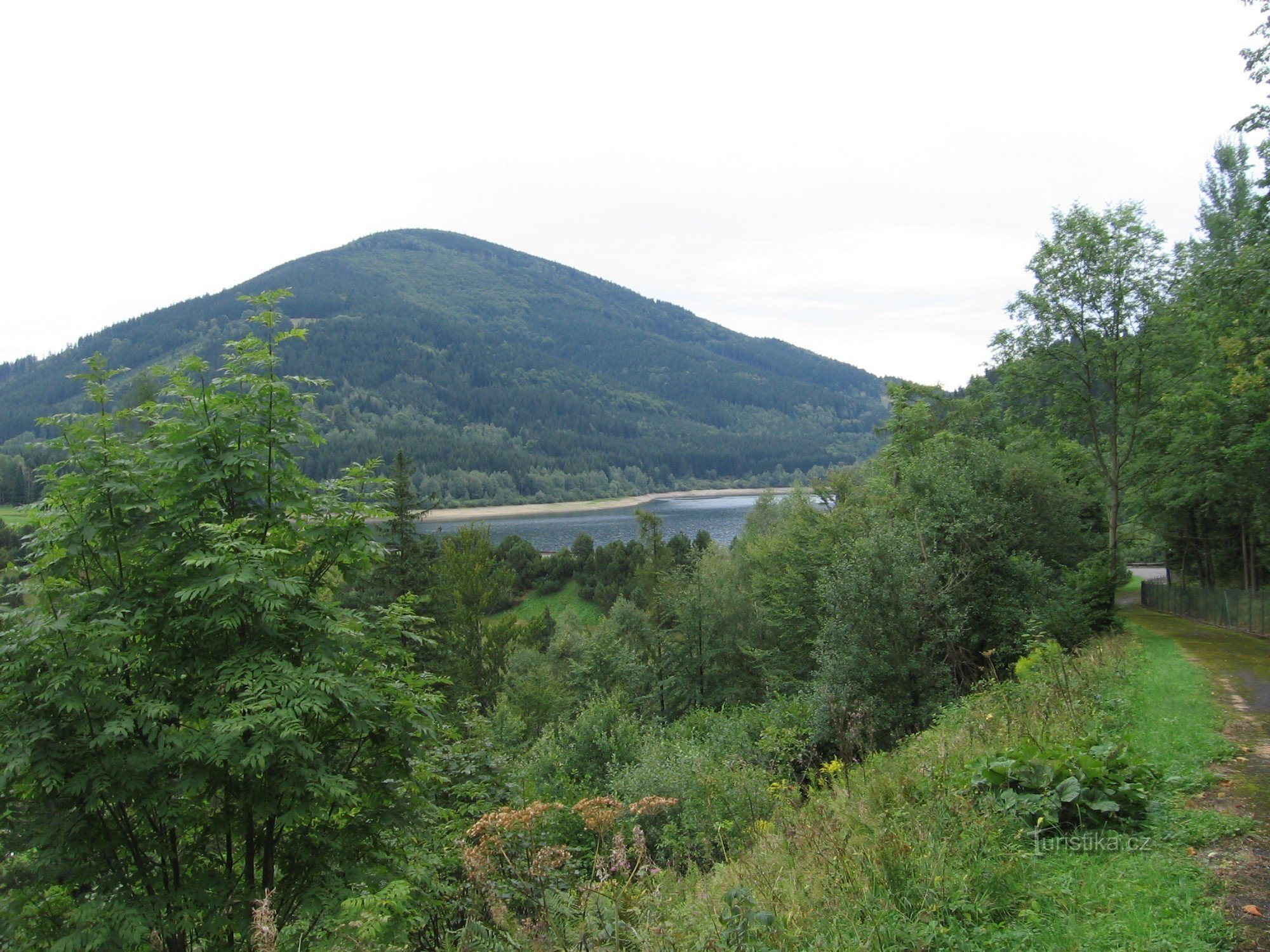 Do Morávky jsme přijeli autem, které necháváme na pakovišti u mostu přes řeku. Tady se hned naše cesty rozdělí. Malý cyklista s doprovodem se vydává po cyklostezce okolo Morávky a zdatnější část rodiny jede na opačnou stranu do Pražma a dále pak přes Krásnou na Visalaje. Šlapeme do mírného kopečku k hrázi, kde můžem zastavit a dívat se na vodní dílo. Pak pokračujeme dále po asfaltce a přehradu…