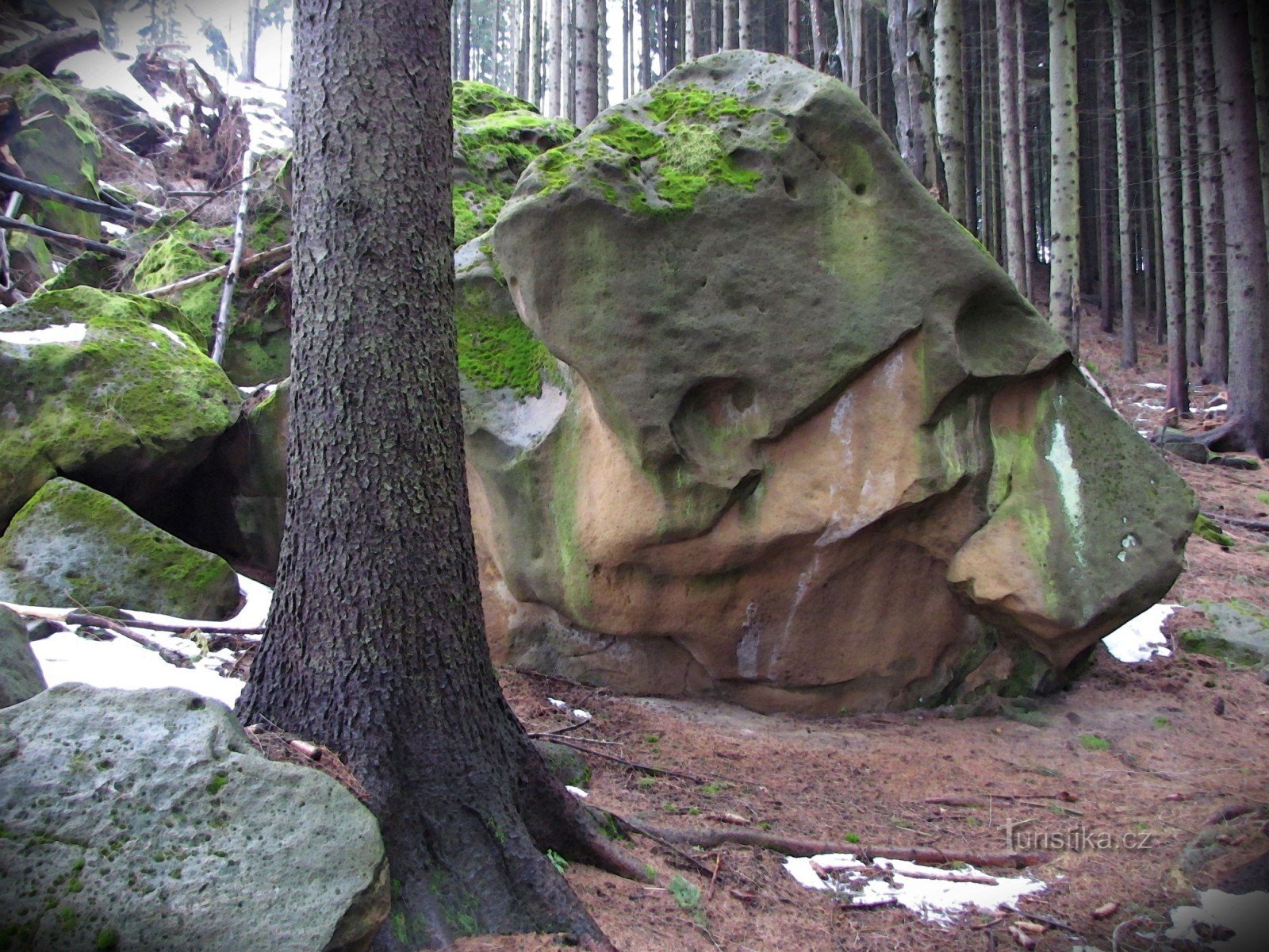 Celý rok jsem zlobil - přesto se ale Ježíšek zachoval velkoryse a prostřednictvím manželky Jany mi nadělil spoustu hezkých dárků. Kromě jiného jsem dostal také 3 zbrusu nové turistické mapy od Shocartu s neobvyklým měřítkem 1 : 40 000 a na oboustranné mapě Zlínsko - Hostýnské a Vizovické vrchy jsem v blízkosti Lačnovských skal nalezl ikonku, zobrazující veliký skalní útvar, mne dosud neznámý …