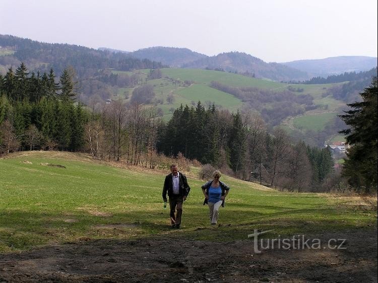 Rozcestí pod lesem nad osadou Na Písečné patřící k obci Vlčková. Křižovatka červené tur. trasy s modrou tur. trasou. Po červené dojdeme dolů do obce Vlčková nebo opačným směrem k zříceninám hradu Lukova a do Lukova. Po modré pak na Kašavu a Hrobic, opačným směrem na rozcestí Pod Kuželkem a Pod Oklukem na Holý vrch a dále do nitra Hostýnských vrchů.