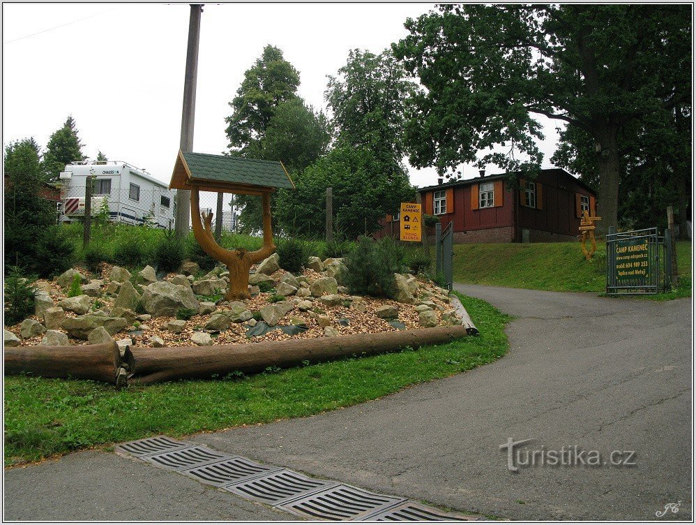 Trasa začíná na teplickém náměstí (foto 1) a její začátek je značen zeleně. Postranními uličkami města šplháme do kopce kolem autokempu Kamenec (foto 2 a 3) k lesu. Zde u sjezdovky (foto 4) odbočíme vlevo po modré značce. Ta vede zpočátku po kraji lesa, později lesem k silnici z Teplic nad Metují na Skály. Na ni se napojí v její první serpentině s rozcestím Růžek. Po silnici dojdeme až k penzionu…