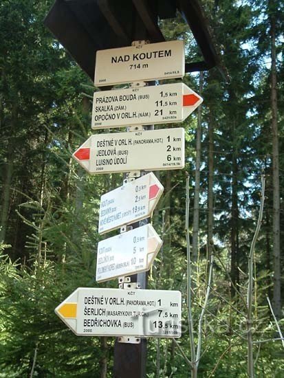 Rozcestí červené a žluté turistické značky. Nachází se pod vrcholem Špičák, asi 2 kilometry západně od Městečka Deštné v Orlických horách. Rozcestí se nachází na konci třešňové aleje na lesní a polní cestě.
