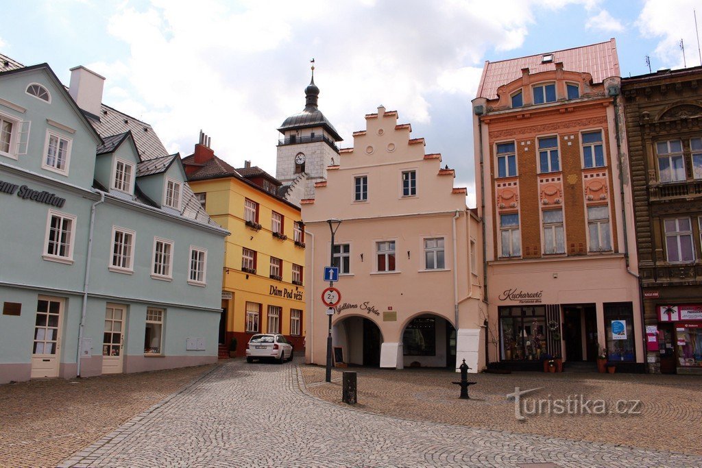 Výše uvedené náměstí patří k nejzachovalejším památkám městské památkové zóny. Většina domů je památkově chráněná. K těm nejcennějším patří dům čp. 73. Byl postaven ve druhé polovině 16. století a v roce 1654 dostal současný vzhled. Dům má gotický stupňovitý štít a podloubí. Dům, ve kterém je městské informační centrum, je z roku1775. V západní části náměstí je budova bývalé Českokamenické…