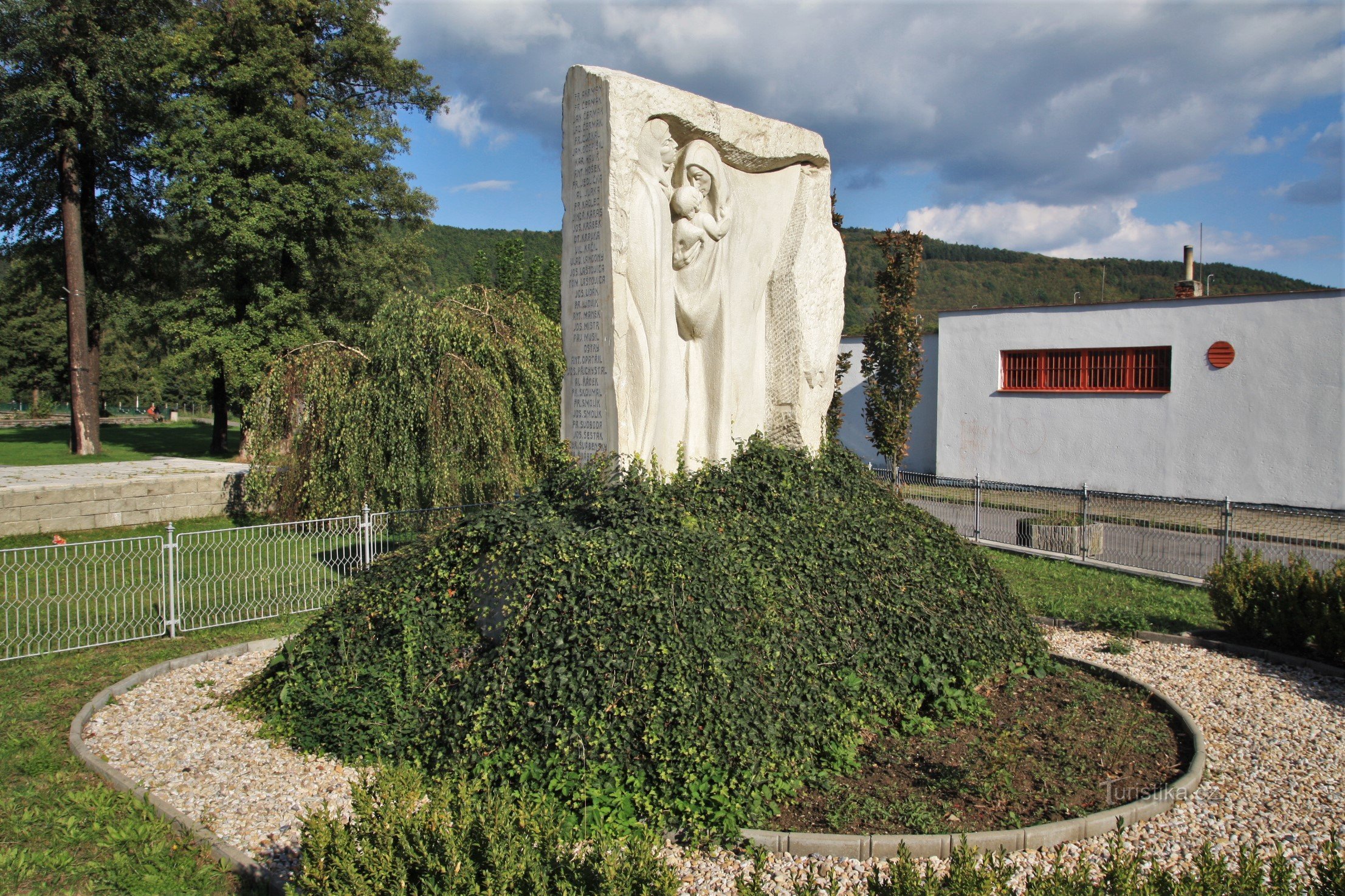Nachází na okraji parku u rybníka v blízkosti nákupního střediska. Symbolizuje loučení legionáře s rodinou a současně představuje matku držící v náručí dítě a ukazující do dálky, kde padl její manžel a otec dítěte. Pomník upoutá svou uměleckou hodnotou a jednoduchým ztvárněním hluboké myšlenky skutku, žalu nad zbytečně promarněnými životy ve válce světových mocností. Ideový návrh na pomník…