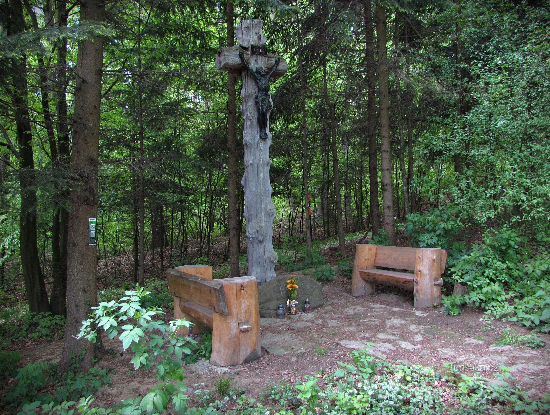 Při putování minipohoříčkem Chřiby můžete narazit na poměrně unikátní sakrální pamětihodnost, to ale musíte kráčet po lesní asfaltce bez značení od tur.rozcestí U Mrazíka (zde se spolu setkává žlutá a zelená trasa) po silničce k nedaleké Nové Dědině. Za výraznou zákrutou uvidíte v mírném stoupání zajímavý dřevěný kříž se soškou černého Krista. Soška je zhotovena z černé litiny, proto jej místní…