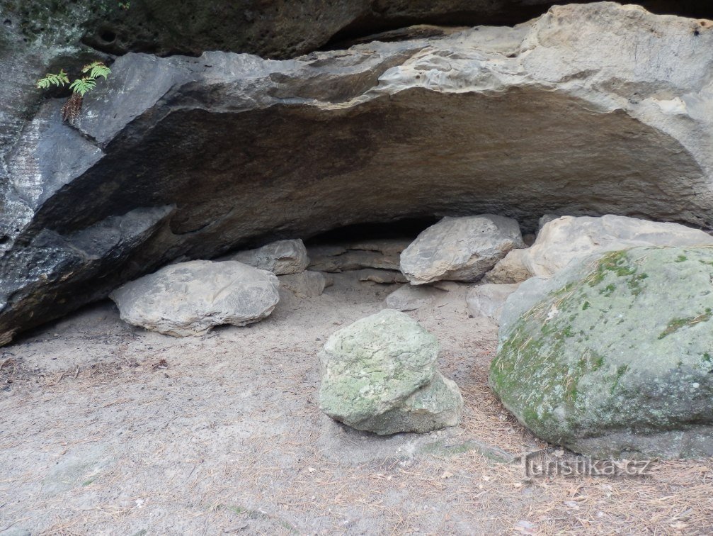 Jižně od přírodní rezervace Příhrazské skály se nachází zalesněný kopec Smrkovec (352 m n. m.). Nebylo by na něm nic zvláštního, nebýt na jeho vrchu Obětní kámen ve tvaru mísy se žlábkem na odtékání krve (přiznám se, že mi Obětní kámen připomíná spíše křesílko). V jeho těsné blízkosti nalezneme dvě polojeskyně s kusy hrubých model, jak sděluje tabulka na stromě (v kamenech pod převisy jsem žádné…