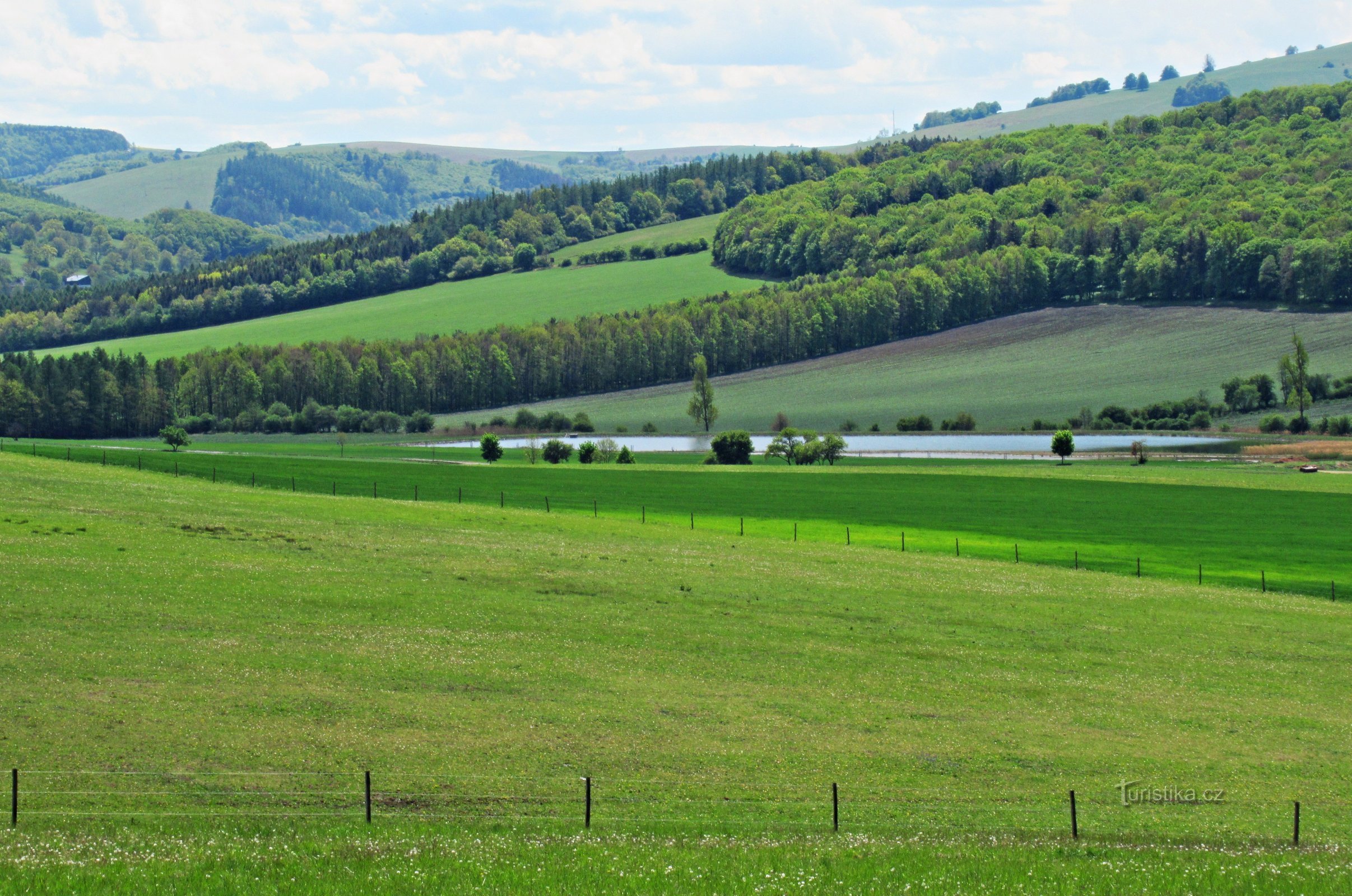 Od větrného mlýna nad Kuželovem přes výhledový vrch Bojiště k rozhledně Drahy