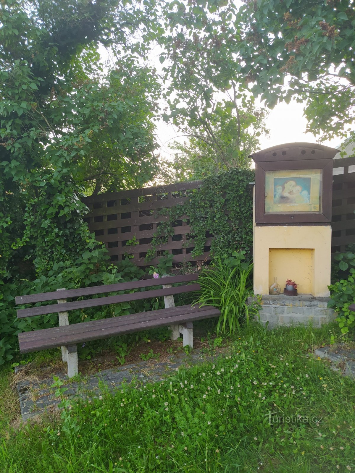 Dvě lavičky v zeleném místě u "obrázku"... Klidné trojcípé místo se nachází v místní části Zlína - Prštné na rozcestí čtyř cest Nad humny a Pod strání v těsné blízkosti studny(funkční pumpa s užitkovou vodou).