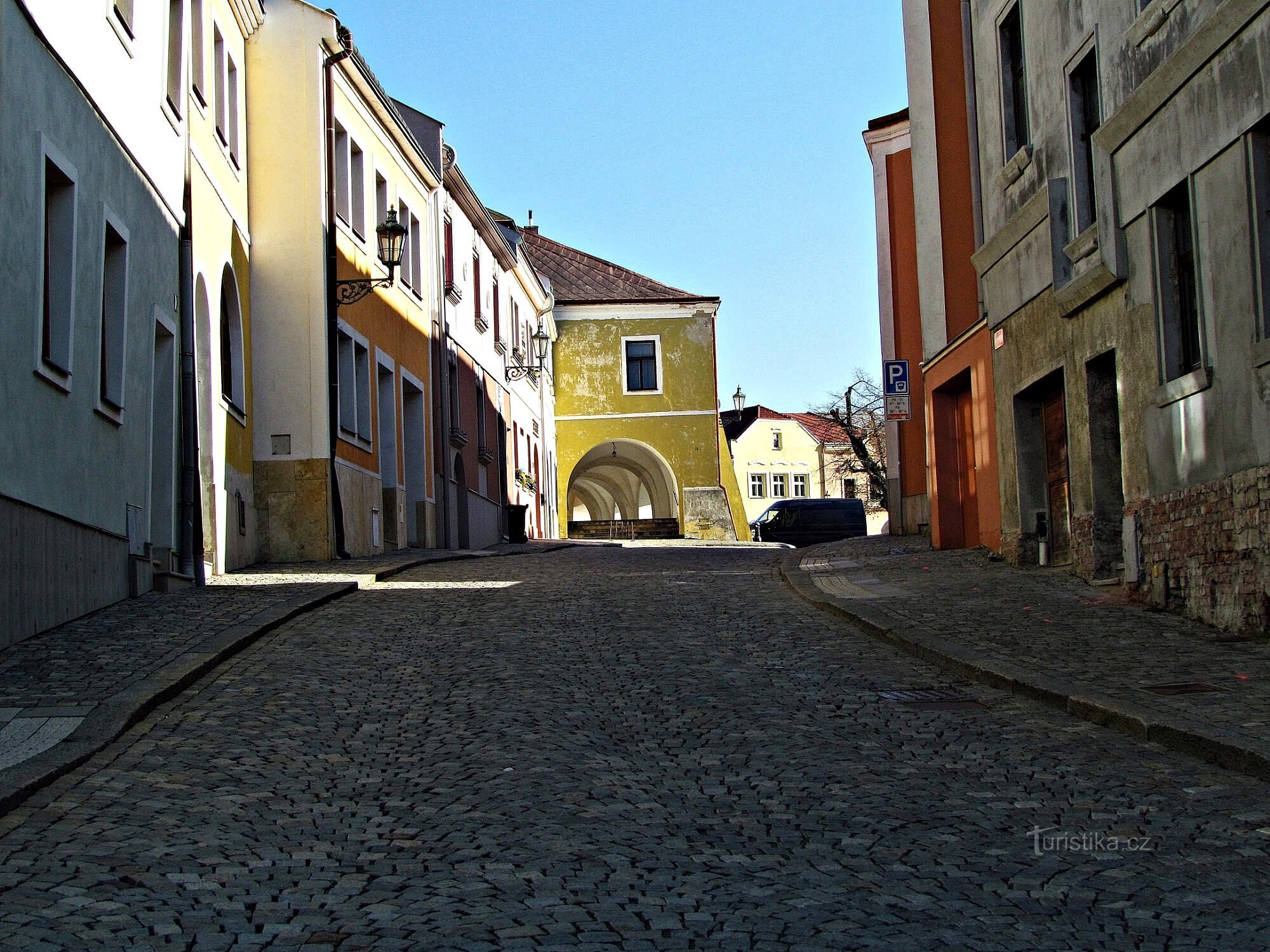 Po opětovném přejítí Bečvy přes lávku u loděnice jsme prošli pod opravenými městskými hradbami až na jejich konec, za nimi nakoukli do uličky vedoucí k Hornímu rynku, a poté už vkročili na nejvyšší bod svažitého náměstí T.G.Masaryka, které má půdorys čtverce.