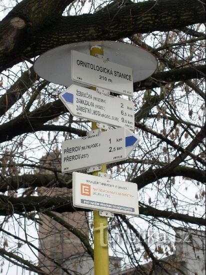 Rozcestí turstických cest u ornitologické stanice. Tři cesty vedou do Přerova, do městského parku Michalov a nebo směrem do rezervace Žebračky a dál do Zábešní Lhoty. Značky jsou pro pěší, ale hojně je využívají i cykloturisté.