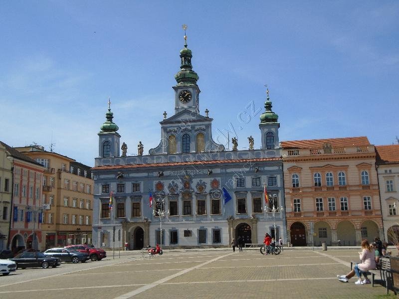 Barokní radnice postavena dle návrhu A.E.Martinelliho v l. 1727-1730. Souměrná třívěžová budova na jihozápadním rohu nám. Přemysla Otakara II. Prostřední věž s hodinami. Na atice v hlavním průčelí sochy 4 alegorií od J.Dietricha. V hlavní místnosti nástropní freska Šalamounova soudu od J.Schőpfa.