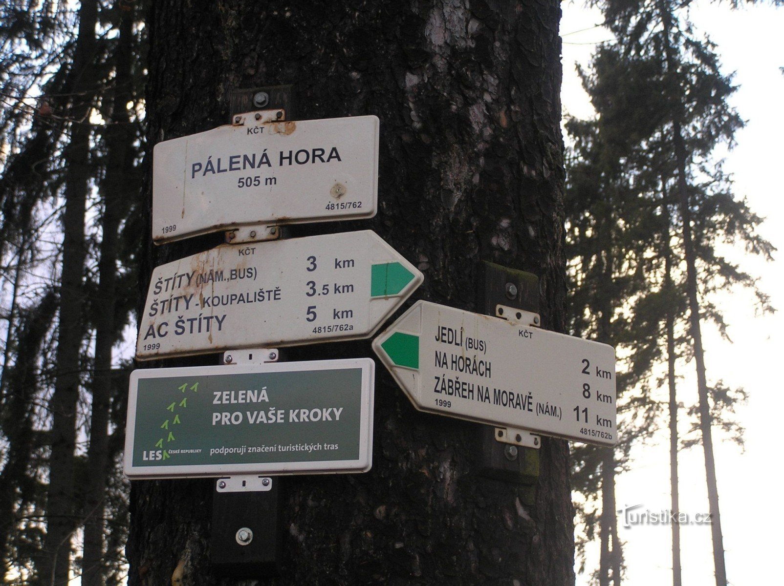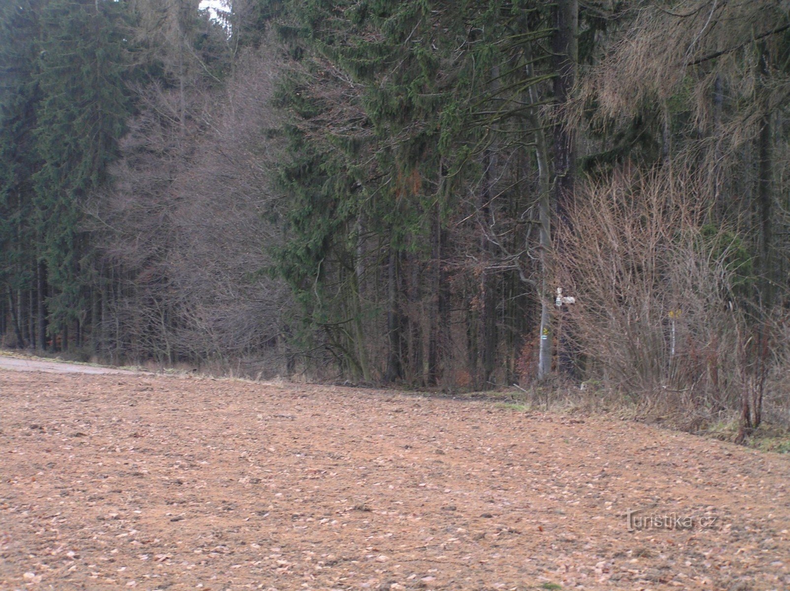 Rozcestí na zelené značce ze Štítů do Zábřeha na Moravě.