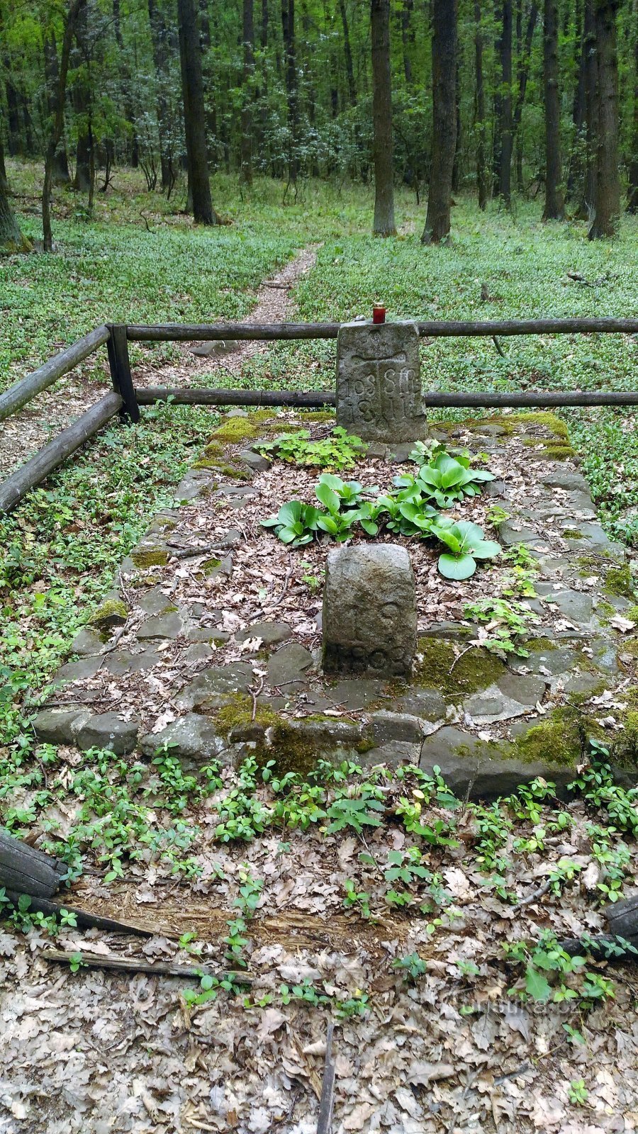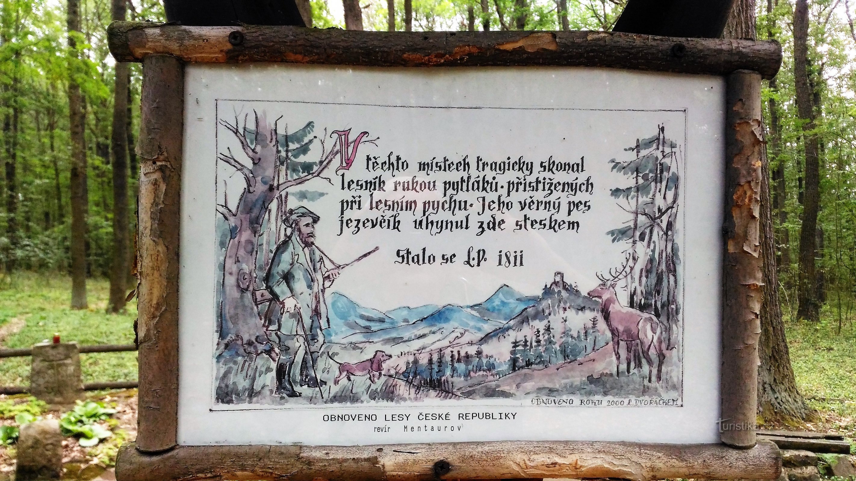 Ve svahu vrchu Plešivec, nedaleko od zříceniny hradu Kamýk, se v lese nacházejí tři památné kameny. Malý pomníček je věnovaný památce myslivce, kterého zde v roce 1811 zastřelili pytláci. Na kameni je vytesán kříž a pod ním text JOS SFR 1811. Před pomníčkem je další kámen, na kterém je vytesána velká číslice 19 a pod ní letopočet 1803. O tomto kameni se nedochovali žádné informace. Vedle pomníčku…