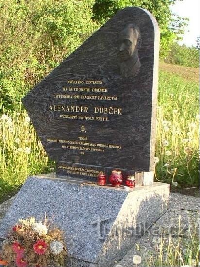 Památník reformního politika A. Dubčeka stojící nedaleko místa jeho nehody u parkoviště Humpolecké benzínové pumpy na dálnici D1 ve směru na Prahu.