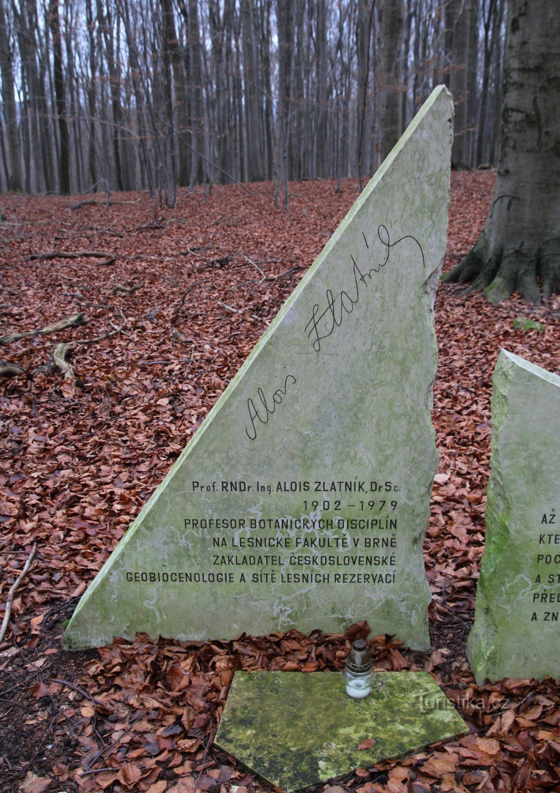 Nachází se ve střední části CHKO Moravský kras na katasru obce Habrůvka na severním okraji národní přírodní rezervace Habrůvecká bučina. Památník zde byl zbudován v roce 1998. Tvoří jej dva kamenné trojúhelníky z částečně opracovaného vračanského vápence. Prof. RNDr. Ing. Alois Zlatník, DrSc. (1902-1979) patřil mezi zakladatele lesnické typologie u nás a jejího uplatnění v lesnické praxi. Zasadil…
