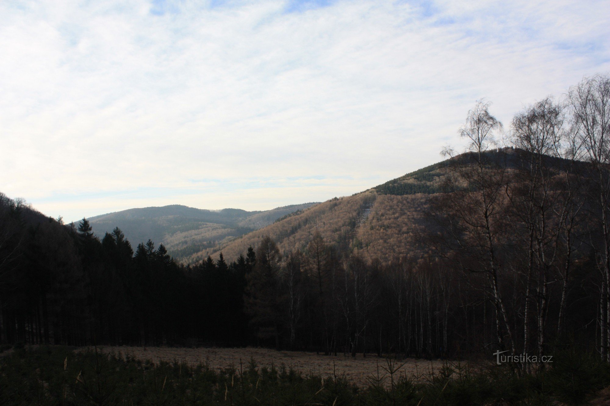 Panoráma Hostýnských vrchů s Hostýnem ze severních svahů nad Chvalčovem