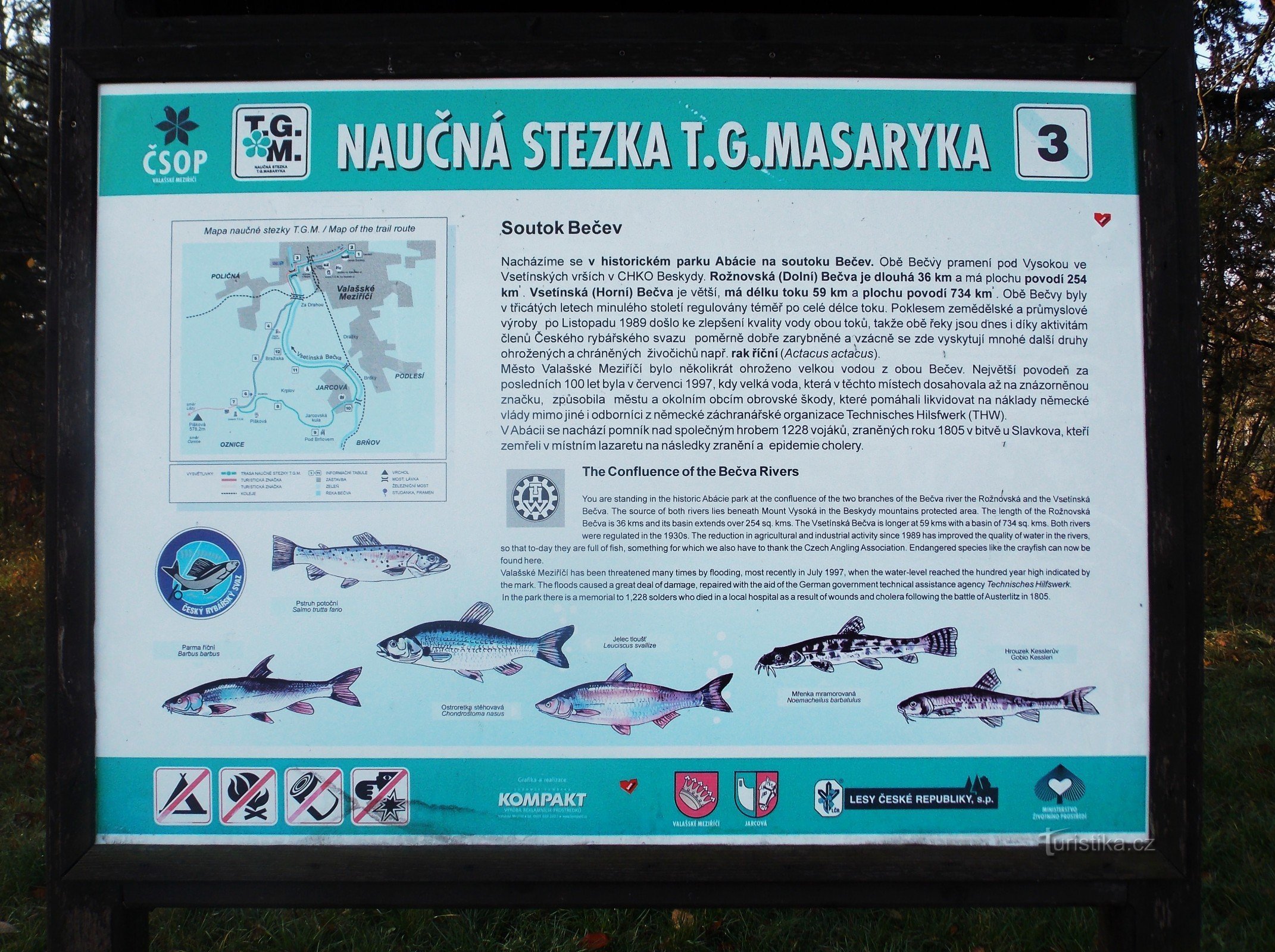 Řeka Bečva je největším přítokem řeky Moravy, vznikla soutokem dvou Bečev - Vsetínské a Rožnovské ve výšce 288 m. n. m. s délkou toku 61 km. Obě řeky protékají významným moravským městem Valašské Meziříčí. U soutoku Bečev se zde nachází starý park Abácie, a to na západním okraji města " Valmezu ", asi 1 km od náměstí.