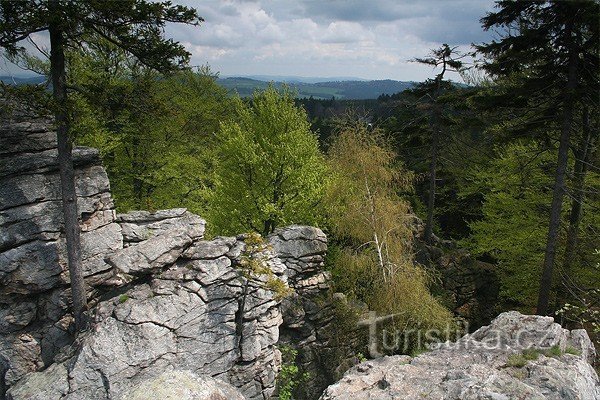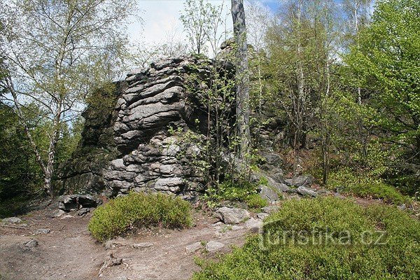 Jedná se o soustavu tří skalních útvarů (Omšelý hřeben, Vyhlídka a Pernštějn). Skalní útvar Vyhlídka nabízí upravenou vyhlídku s výhledem na daleké okolí - za dobrých podmínek je odtud prý vidět i nejvyšší vrchol Jeseníků - Praděd. I z dalších dvou skalních útvarů je krásný výled, na jeden z nich můžeme jako turisté vyjít po neznačené cestě, na ten druhý už je ale potřeba horolezecké vybavení.…