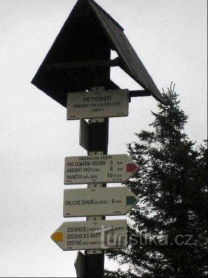 Rozcestí Pěticestí se nachází východně od obce Zdobnice v Orlických horách.