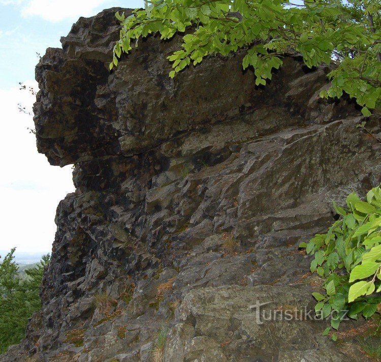 Na jihozápadním svahu kopce, asi 0,5 km nad Stožeckým sedlem je ještě jedna nevelká kupa se starým lomem, z jejíhož vrcholku vyčnívá čedičová skalka, zvaná Pětikostelní kámen (689 m). Z úpatí skalky je pěkný výhled přes údolí Lesenského potoka na Jelení kameny, Jedlovou a Tolštejn, do okolí Jiřetína pod Jedlovou a dále směrem k Rumburku. Jméno skály naznačuje, že by odtud měly být vidět věže pěti…