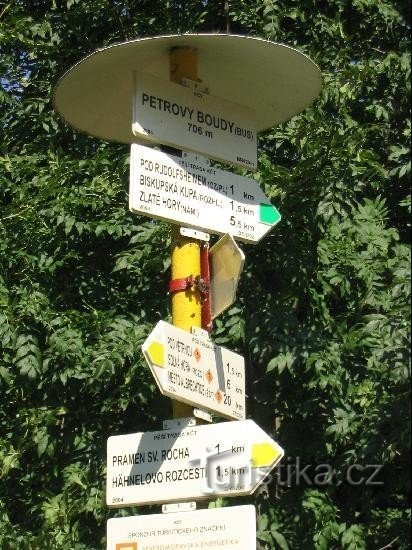 Petrovy boudy je rozcestí na žluté a zelené turistické trase a nachází se západním směrem od obce Petrovice. Rozcestí je v místech kde prochází hranice mezi Olomouckým a Moravskoslezským krajem. Rozcestník je umístěn v místech kde turistické trasy křižují silnici vedoucí z obce Petrovice do města Zlaté Hory. V sousedství rozcestníku je zastřešené odpočinkové místo a informační tabule s…