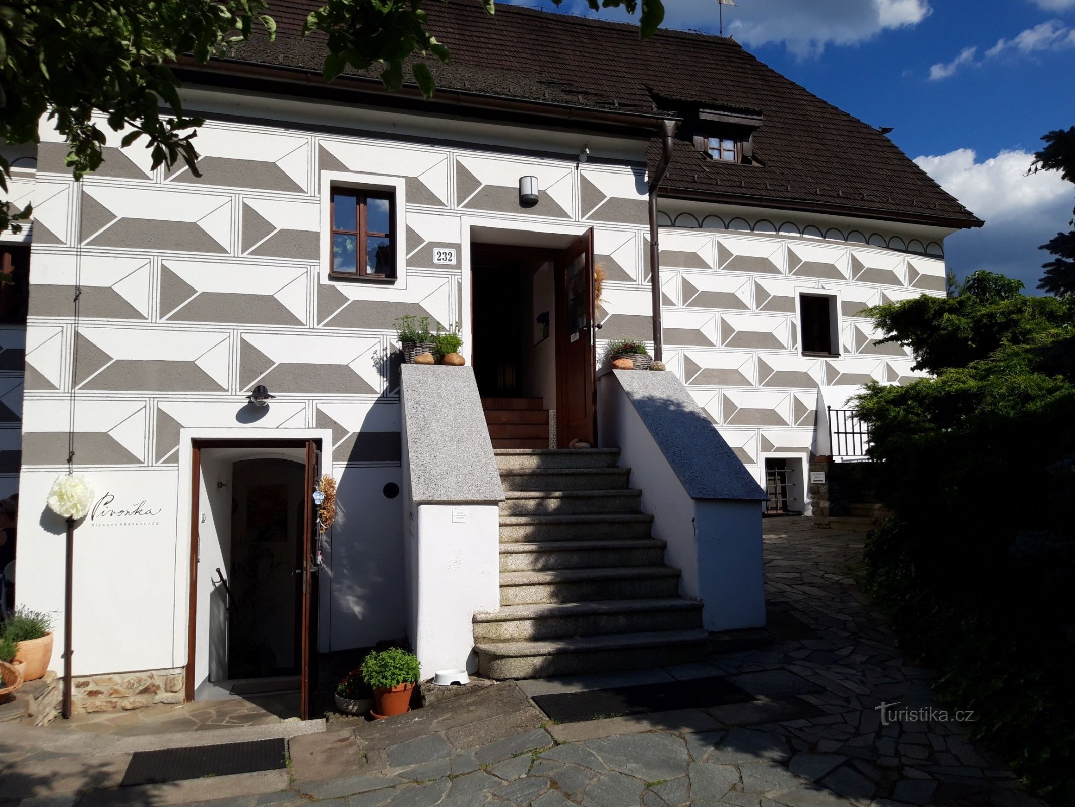 Řízková restaurace Pivoňka v Českém Krumlově je rodinná restaurace v renesančním domě z 16. století. Nachází se na okraji města, tudíž odpadá problém s parkováním. V létě je možno využít příjemné romantické venkovní posezení včetně jezírka, květinové výzdoby či zázemí pro děti.
