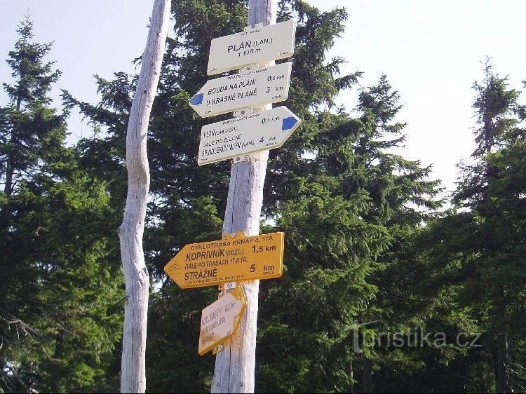 Na Pláň se dostanete sedačkovou lanovkou ze Svatého Petra. Je to příjemná planina, vede tu okružní trasa od lanovky k Boudě Na Pláni a k Hájence.