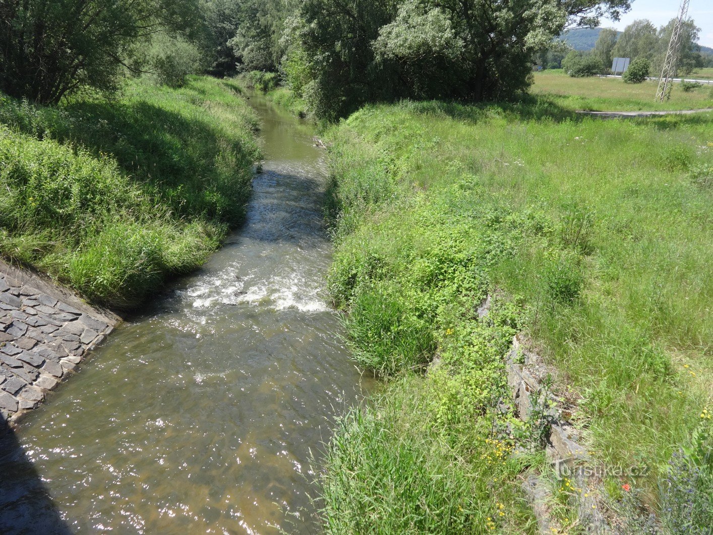 Říčka jménem Ploučnice pramení pod Ještědem, ale sjízdná je až o kousek dál. My začínáme v městečku Stráž pod Ralskem (km 84,0). Při pohledu z mostu dolů v ulici Ploučnická jsme trochu překvapeni. Přeci jenom jsme již viděli širší řeky.