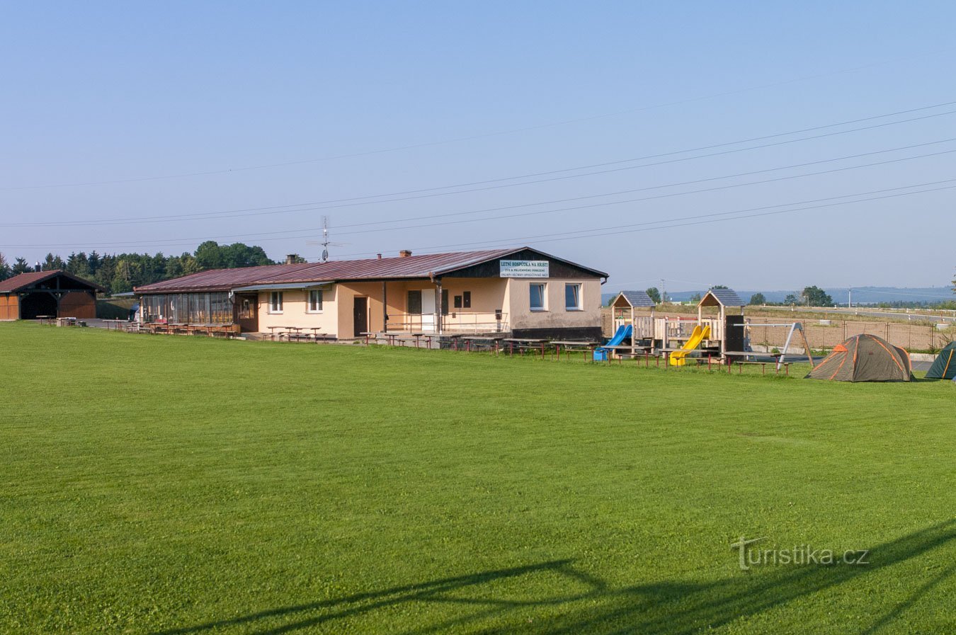 Neděle ráno. Na fotbalové hřiště od rána dopadají sluneční paprsky, takže sušíme navlhlé spacáky a karimatky, které nám pokropil správce hřiště. Jak se sluší na svátek, dnes se i můžeme vykoupat, podle slibu zůstaly otevřeny šatny, tak si dopřejeme ranní sprchu, což nemusí být na takových čundrech pravidlem.