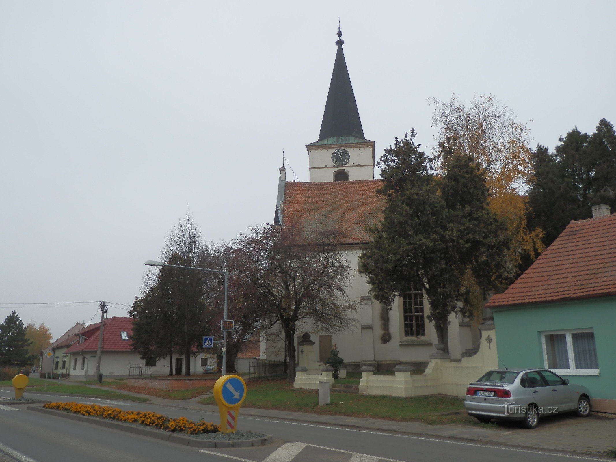 Rozcestník se nachází na návsi u kostela, odkud značka uhýbá postranní uličkou, takže by turista mohl minout zajímavou svatojanskou…