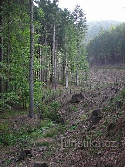 Rozcestí mezi vrchy Kozí hřbet a Dubovice v Orlických horách se nachází na modré a zelené tur. značce severně od Nového Města nad Metují.