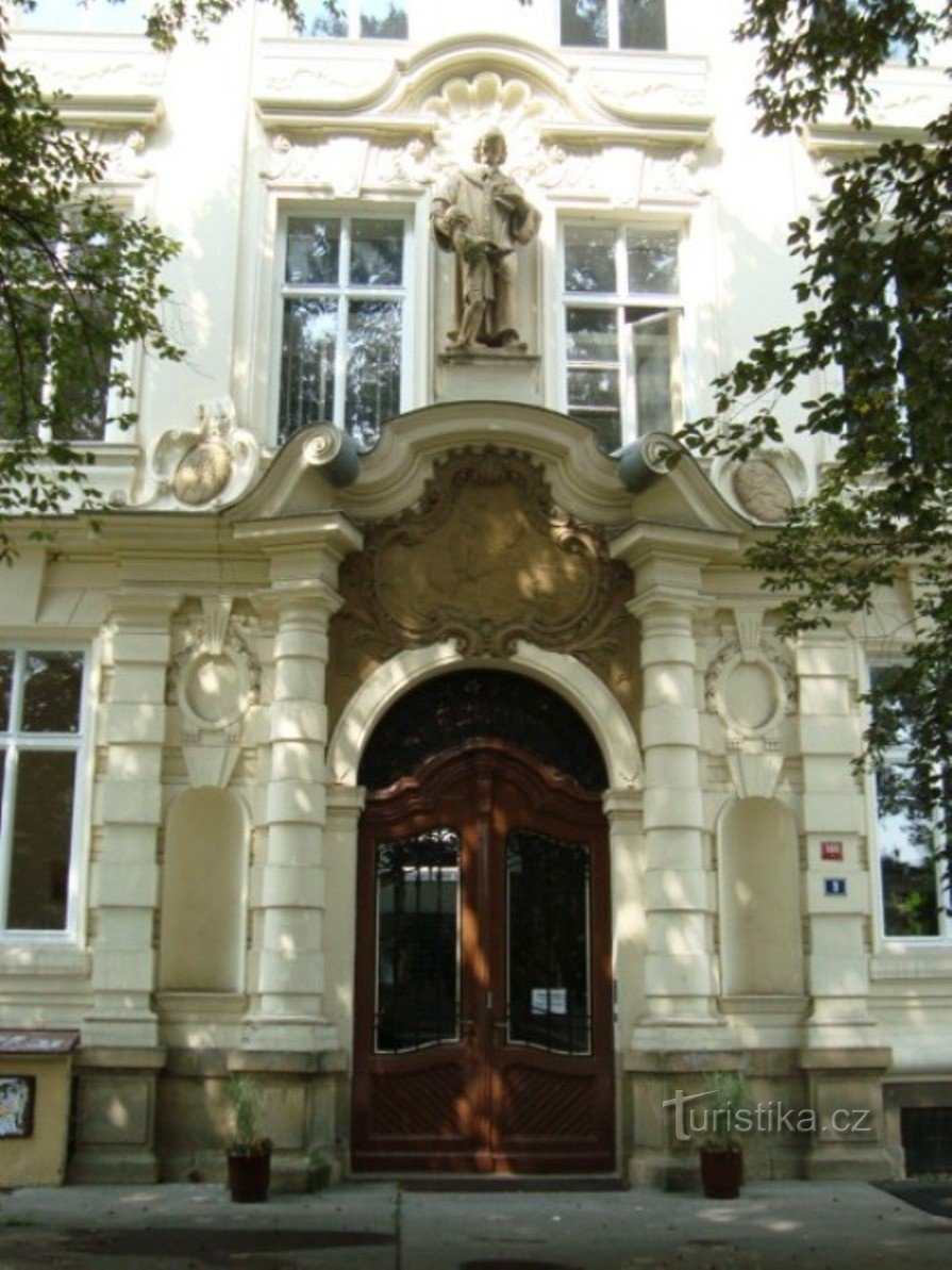 S rozvojem lázeňského města Poděbrady se měnil i ráz města. Vesnický ráz Nymburského předměstí se postupně měnil výstavbou nové vilové čtvrti. Na západním okraji Lázeňského parku byla postavena v r. 1905 podle projektu Františka Schlaffera budova chlapecké měšťanské školy, dnešní gymnázium. Průčelí gymnázia vyzdobil plastikami poděbradský sochař Milan Havlíček. Zanedlouho kolem školy vyrostly…