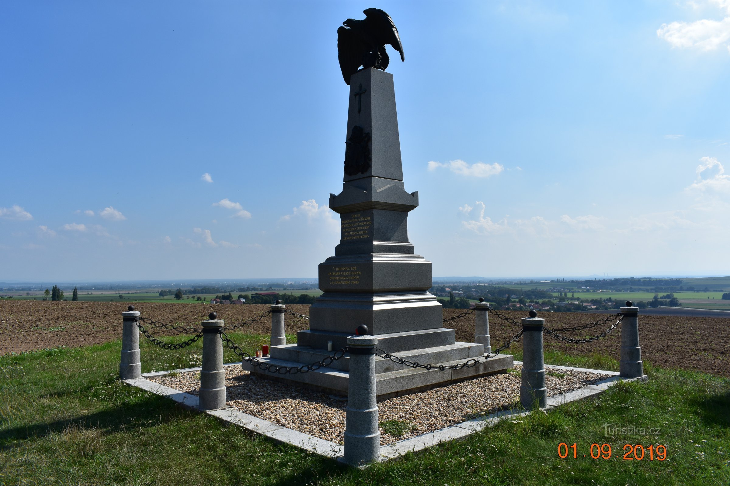 Pomník bitvy u Chlumu Na poli u Chlumu stojí sloup z pískovce se sochou Austrie, rakouské orlice, na památku 1. rakouského armádního sboru, Baterie mrtvých setníka Augusta van der Groebena. Pomník pochází z r. 1896. Bitva u Hradce Králové (jiným názvem bitva na Chlumu nebo bitva u Sadové) byla v roce 1866 během prusko-rakouské války a znamenala rozhodující…