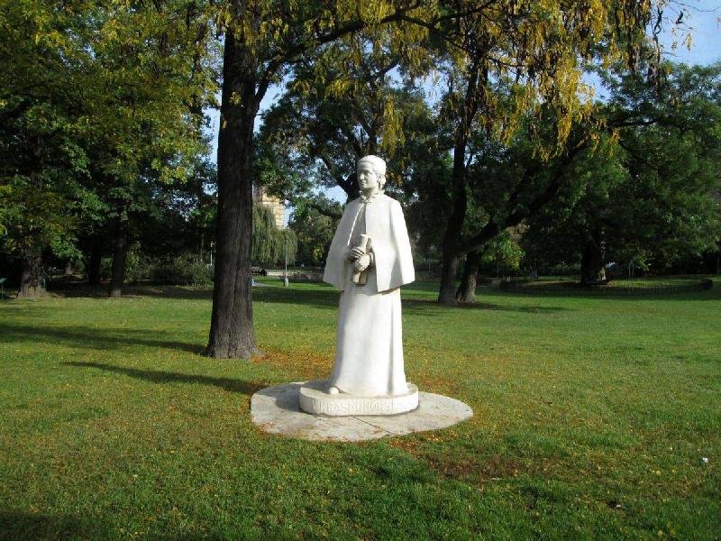 Pomník české básnířky, libretistky, spisovatelky a bojovnice za práva žen na vzdělání Elišky Krásnohorské stojí na okraji parku na pražském Karlově náměstí od r. 1931. Dílo z bílého rumunského mramoru vytvořila první česká profesionální sochařka Karla Vobišová-Žáková.