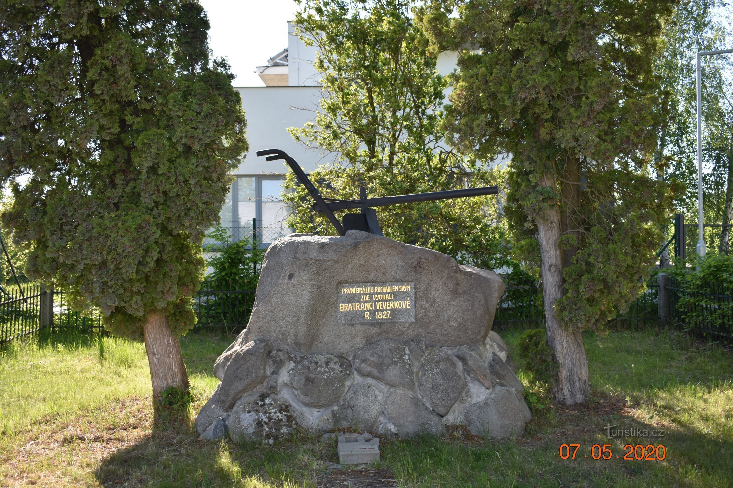 Pomník ruchadla bratranců Veverkových v Rybitví a rodný dům Václava Veverky 7.5.2020 Veverkova 10, Rybitví Památník, který zobrazuje ruchadlo na kameni, je v místě, kde s ním vyorali první brázdu. Nedaleko se nachází rodný dům. Momentálně však nebyl zpřístupněn kvůli době koronavirorouškové. Dům zdobí štít s nápisem Zde se narodil Václav Veverka... U domu je pomník z pískovce věnovaný vynálezcům…
