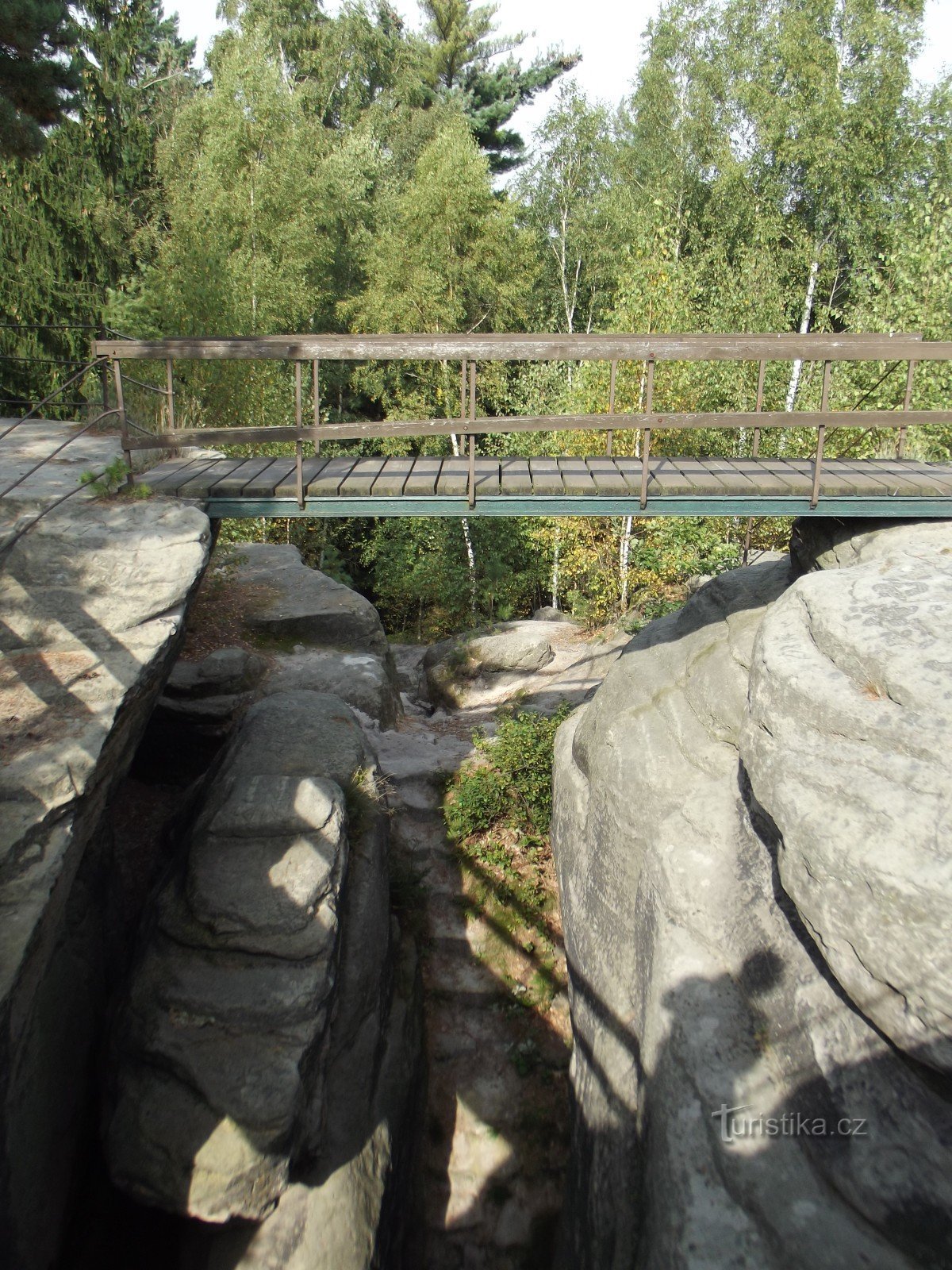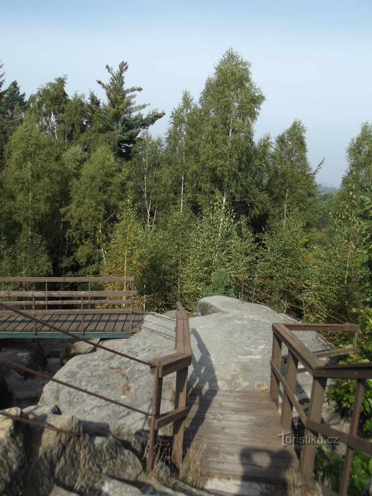 Vyhlídka se nachází asi 2km od České Kamenice. Tvoří ji trojice skalních věží přístupných po vytesaných schodech a vzájemně propojených můstky se zábradlím. Z vrcholu je výhled na Zámecký vrch a Jehlu.