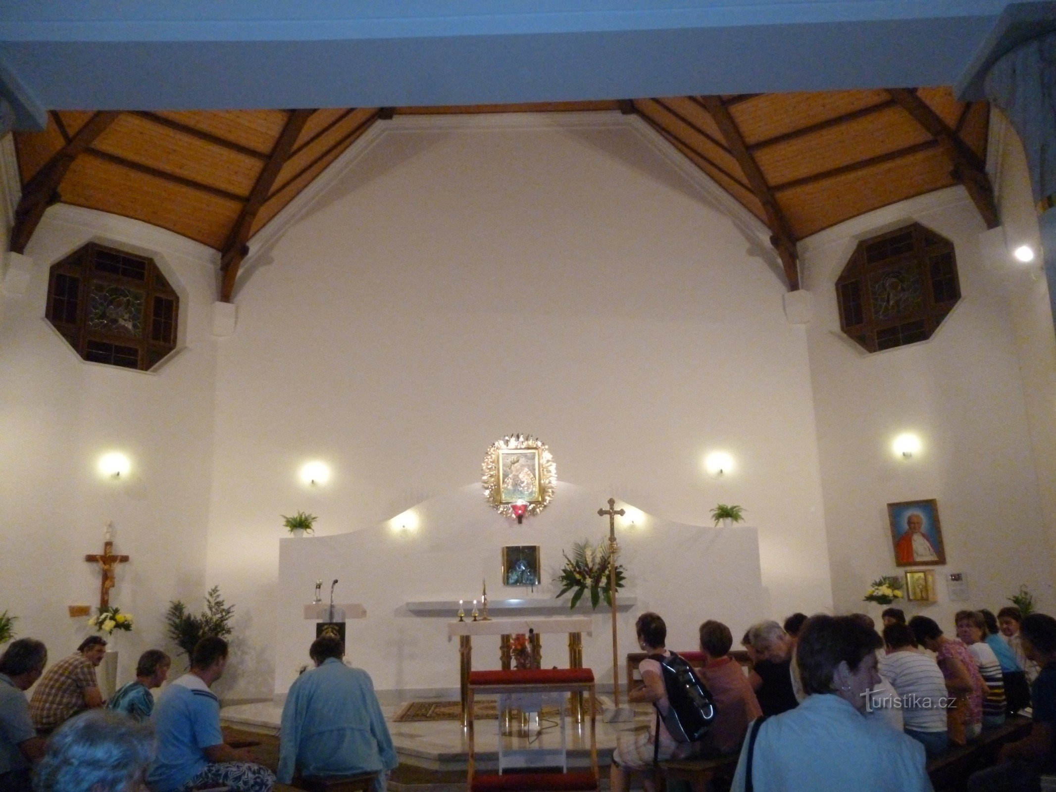 Klidnou chůzí jsme vyšli mírný kopec, kde bylo 14 zastavení a pomodlili v nádherném kostele.