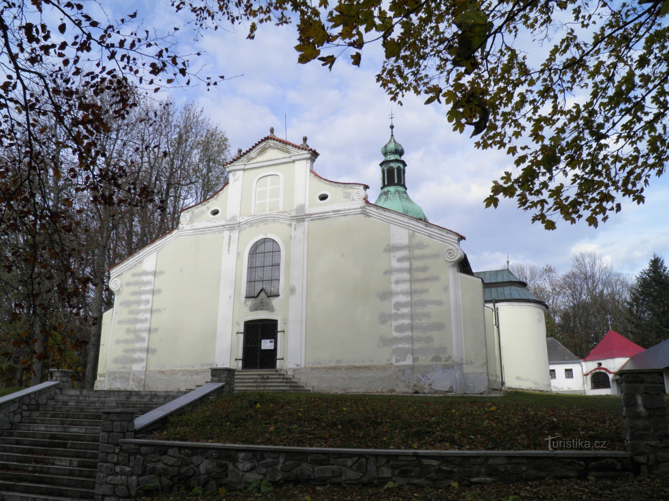 Poutní místo Křemešník s kostelem Nejsvětější Trojice a Křížovou cestou.