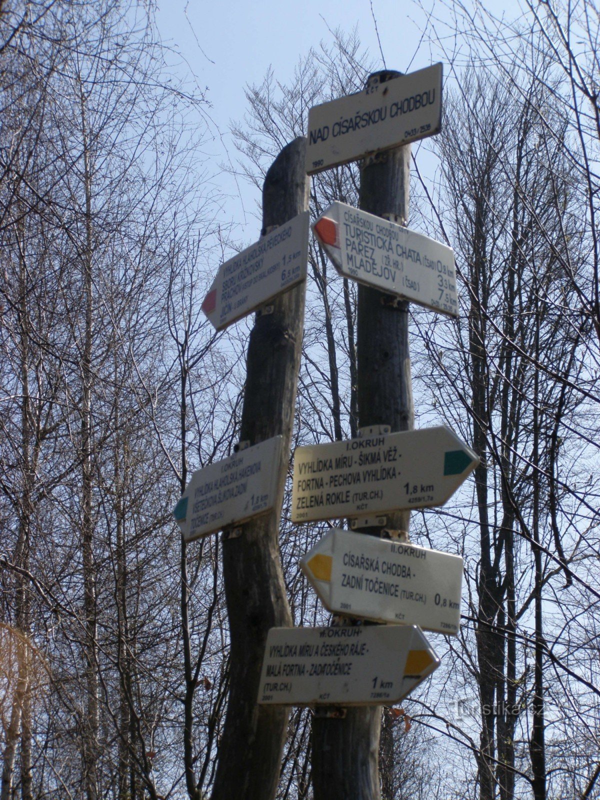 U turistického Rozcestí Nad Císařskou chodbou se kříží tři nejvýznamnější turistické cesty v Prachovských skalách. Setkává se zde žlutě značený malý okruh a zeleně značený velký okruh s červenou značkou, která výletníkům ukazuje cestu ve směru Turistická chata, Císařská chodba - obec Prachov, Holín, Jičín.
