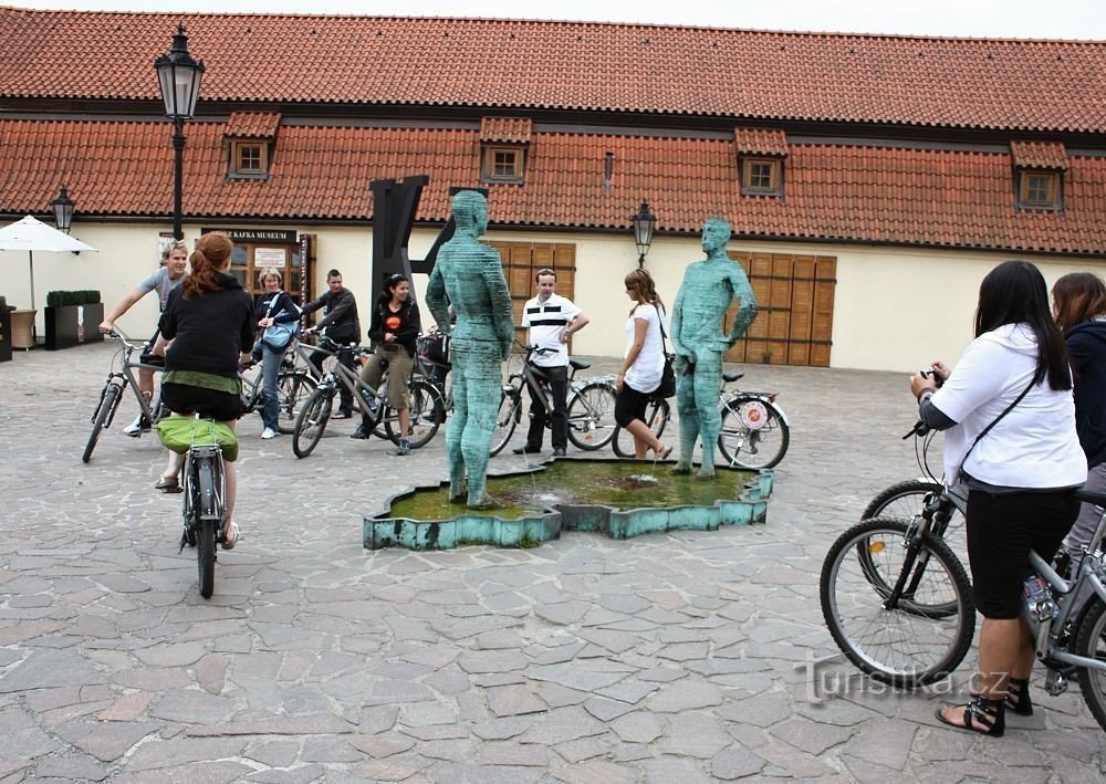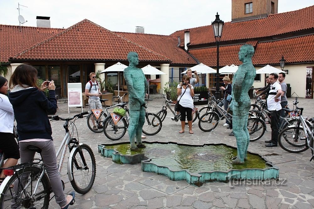 Toto zajímavé sousoší najdete přímo na nádvoří Hergetovy cihelny. Sochy jsou tvořeny z plátů, které se dají otáčet a stojí v bazénku ve tvaru naší České republiky. Za mírný poplatek můžete jejich mužství a to, co z nich tryská, směřovat dle libosti...