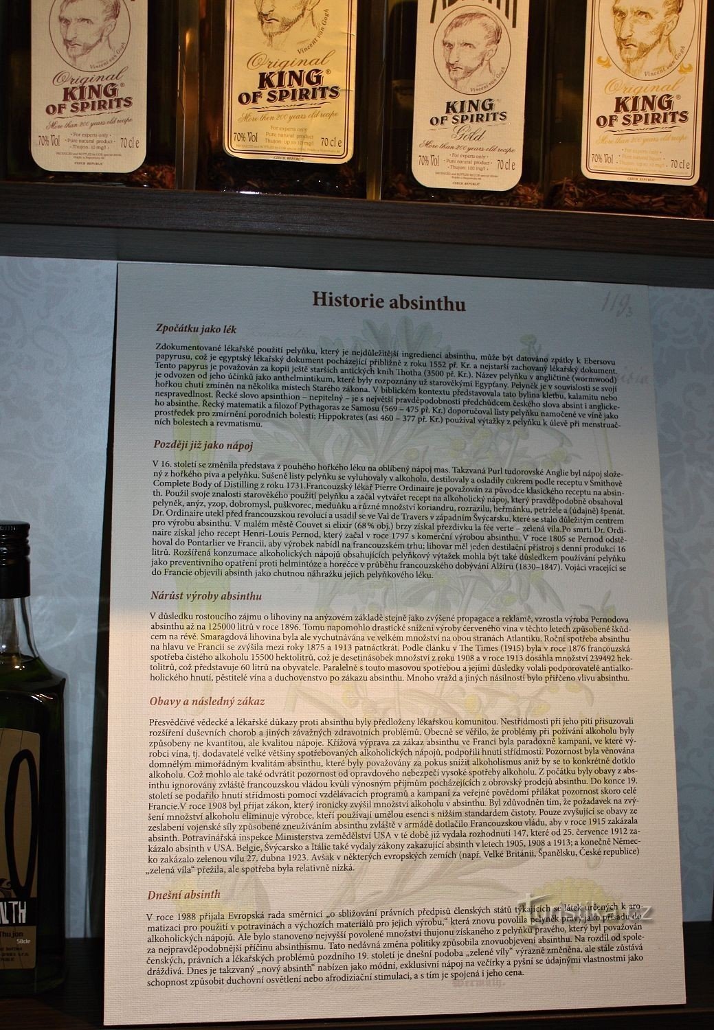 Muzeum.. zde najdete skutečný světový výběr absinthů. Najdete zde opravdu staré originály.