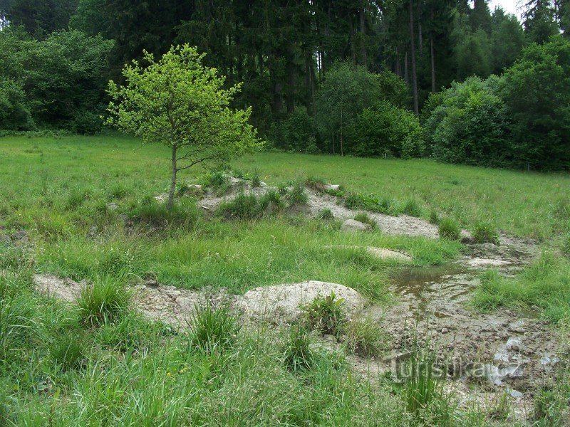 Tento pramen mi připomíná oázu v poušti, proto jsem ho takto pojmenoval. Buhužel leží na pozemku, kde se pohybují krávy, které sem chodí občas na pastvu. Pozemek je ohrazen drátěným ohradníkem, ve kterém není proud.