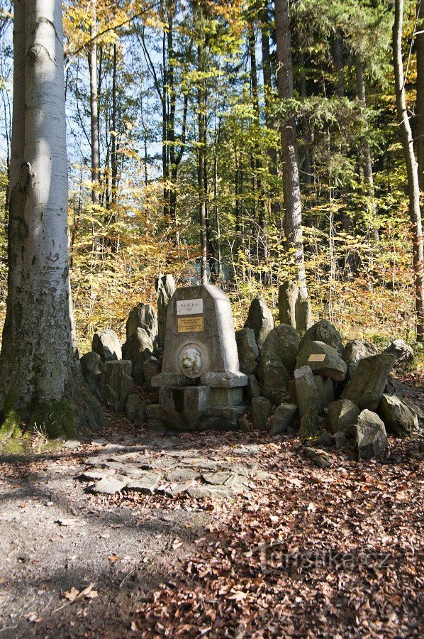 Poněkud stranou od hlavních stezek ve Smetanových sadech v Jeseníku najdeme pomníček s pramenem zvaným Skalka. Naštěstí je celkem dobře dostupný po okraji trávníku pod Anglickým pomníkem a všeteční návštěvníci k němu dávno vyšlapali malou pěšinku.