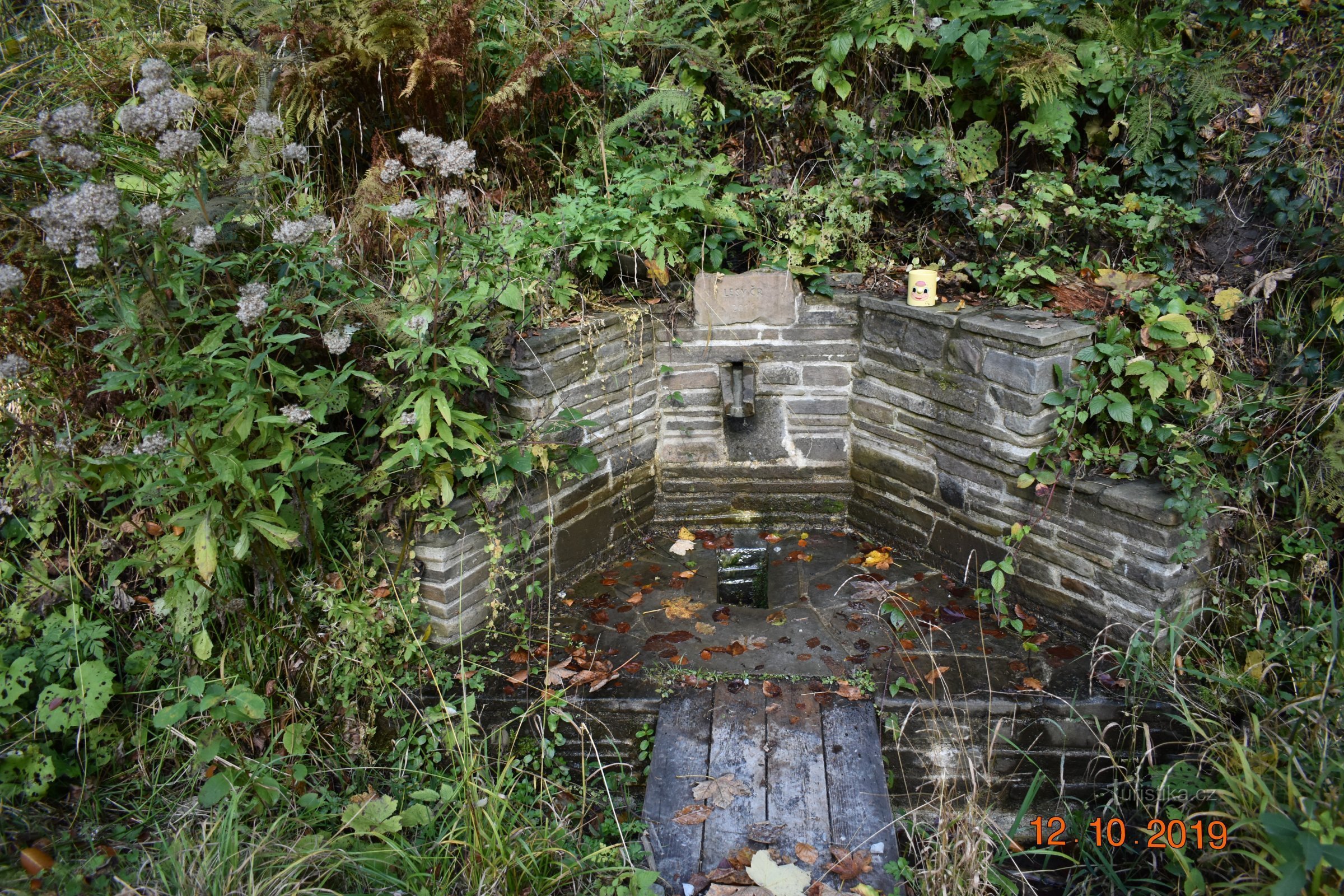 Pramen U žlábku 19.10.2019 Studánka, rekonstruovaná v r. 2015 se nachází na rozhraní Horní a Dolní Lomné přímo u značené cesty na chatu Slavíč.