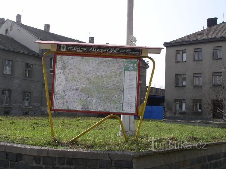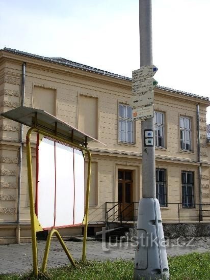 Výchozí bod turistických značených cest do okolí Přerova. Zelená a modrá vedou různými cestami do Zábešní Lhoty. Rozcestník i s mapou je umístěný přímo u východu z nádraží.